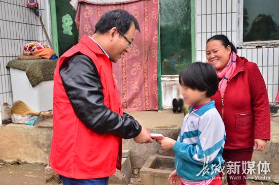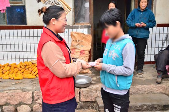 爱心志愿者将助学金发放到孩子手中。通讯员供图